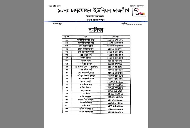 চন্দ্রমোহন ইউনিয়ন ছাত্রলীগের শীর্ষ পদে,মাদক ব্যবসায়ী অছাত্র ও বিএনপি-জামায়াত পরিবারের সন্তানের নাম। এমন খবরে হতবাক ইউনিয়ন ছাত্রলীগের ত্যাগী নেতা-কর্মীরা। ছাত্রলীগের ইমেজকে প্রশ্নবিদ্ধ করবে এমন নেতাদের বাদ দিয়ে কমিটি গঠনের দাবি তাদের।